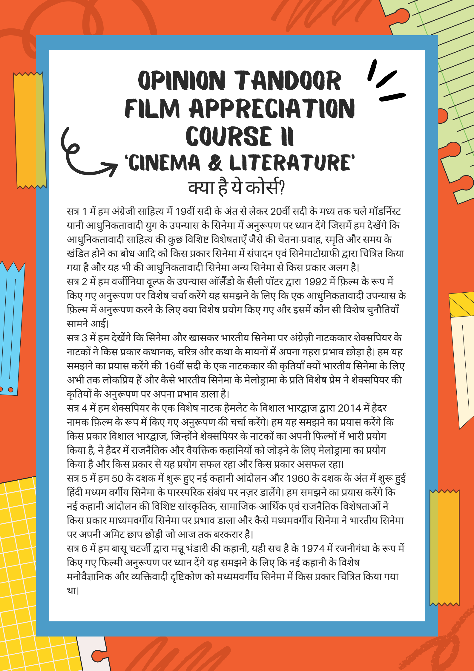 Opinion Tandoor Film Appreciation Course II- Cinema and Literature to start from 14th December 2025. More details about the course registration in the poster above. Click here for the Registration form